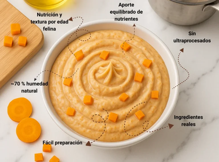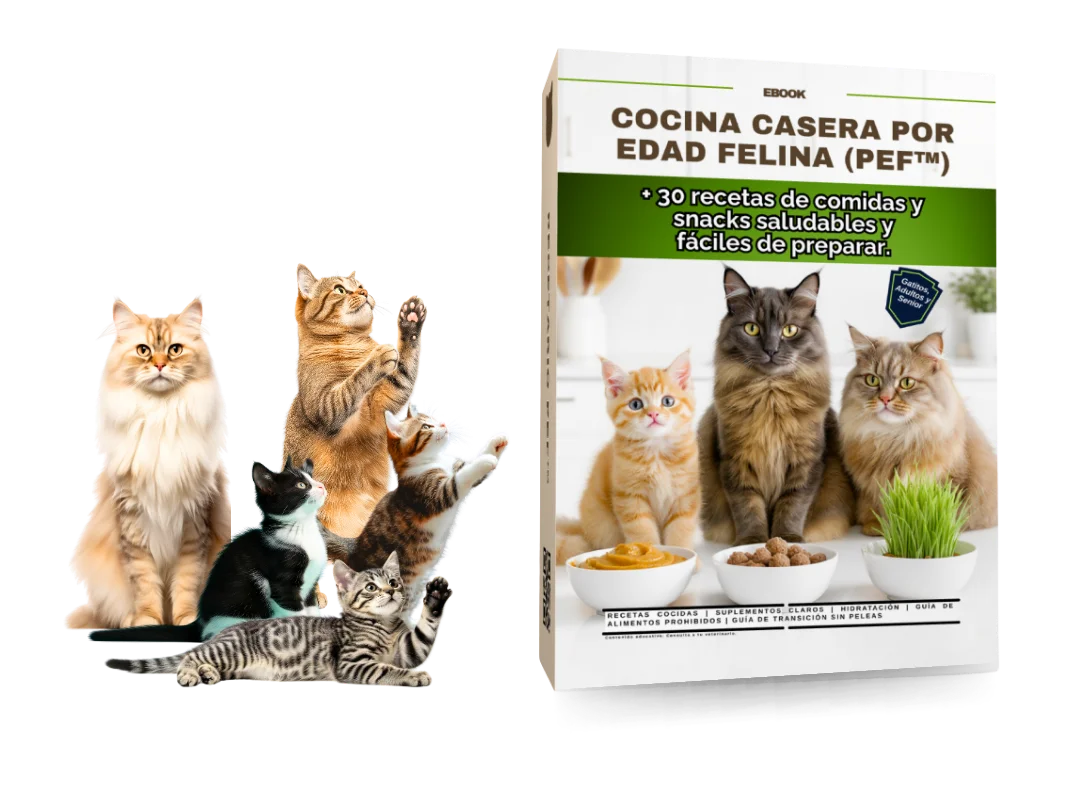 Las recetas están modeladas con referencias veterinarias y ajustadas por etapa (gatito, adulto, senior). Donde aplica, indicamos suplementos y límites. Es material educativo; ante condiciones clínicas, consulta a tu veterinario.